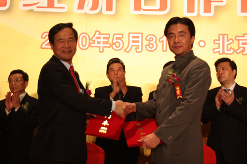 中國臺灣網(wǎng)5月31日北京消息 北京臺資企業(yè)協(xié)會成立二十周年慶典活動暨京臺經(jīng)濟(jì)合作高端論壇31日在京舉行,圖為北京市臺協(xié)與島內(nèi)行業(yè)團(tuán)體簽署合作協(xié)議。(中國臺灣網(wǎng) 趙輝 攝)