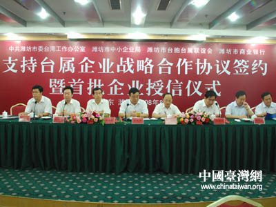 山東濰坊市舉行了支持臺資企業(yè)戰(zhàn)略合作協(xié)議簽約暨首批企業(yè)授信發(fā)放儀式