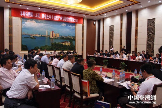 9月21日上午,由國務院臺辦和江西省政府共同主辦的“2009贛臺經(jīng)貿(mào)合作研討會”在南昌開幕。開幕后,兩岸工商企業(yè)代表就有關(guān)投資合作項目及協(xié)議現(xiàn)場簽約,隨后,江西省七個專題的研討暨項目推介會同時展開。圖為半導體照明(LED)鋰電池及電子信息產(chǎn)業(yè)專題研討會暨推薦會現(xiàn)場。(中國臺灣網(wǎng) 鐘寶華 攝)