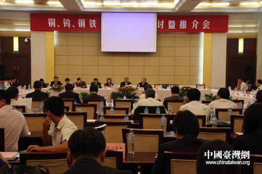 9月21日上午,由國務院臺辦和江西省政府共同主辦的“2009贛臺經(jīng)貿(mào)合作研討會”在南昌開幕。開幕后,兩岸工商企業(yè)代表就有關(guān)投資合作項目及協(xié)議現(xiàn)場簽約,隨后,江西省七個專題的研討暨項目推介會同時展開。圖為銅、鎢、鋼鐵產(chǎn)業(yè)專題研討會暨推薦會現(xiàn)場。(中國臺灣網(wǎng) 鐘寶華 攝)
