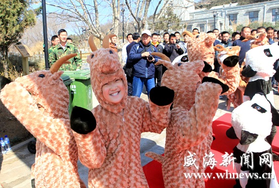 與此同時(shí),在劉公島國家森林公園的廣場(chǎng)上,各有關(guān)部門負(fù)責(zé)人正在對(duì)歡迎儀式的流程進(jìn)行推敲、演練,參加演出的鯨園小學(xué)的小學(xué)生們穿戴著梅花鹿、長鬃山羊、大熊貓?jiān)煨偷姆b在現(xiàn)場(chǎng)表演,參加活動(dòng)的觀眾也在現(xiàn)場(chǎng)列隊(duì)演練。