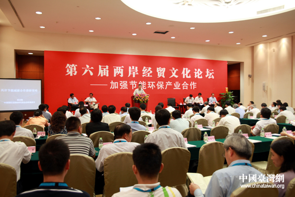 第六屆兩岸經(jīng)貿(mào)文化論壇10日下午舉行“加強(qiáng)節(jié)能環(huán)保產(chǎn)業(yè)合作”專(zhuān)題座談。(中國(guó)臺(tái)灣網(wǎng) 鐘寶華 攝)