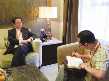 郁慕明在接受記者采訪