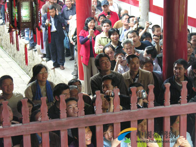 形容連戰(zhàn)的到來為鼓山帶來了巨大的轟動(dòng)一點(diǎn)也不過份,人山人海的圍觀群眾,到處都有喊著“連主席好”的人群,到處都有翹首等著看連戰(zhàn)一行的民眾。這些民眾為了追逐連戰(zhàn)一行的步伐,跟原本就浩浩蕩蕩的記者隊(duì)伍一起四處“亂竄”,把鼓山擠得水泄不通,也讓記者的采訪工作更加困難。不過,從另一方面來說,正是有了他們的到來,才讓連戰(zhàn)的祖地行增添了更多的生動(dòng)與感動(dòng)。