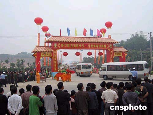 來(lái)閩祭祖的連戰(zhàn)一行抵達(dá)祖地漳州馬崎村口,受到千余名當(dāng)?shù)孛癖、連氏宗親夾道熱烈歡迎。 作者:畢永光