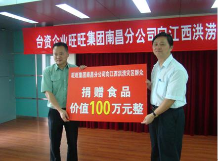 5月份以來,江西開始遭受強(qiáng)降雨襲擊,局部地區(qū)出現(xiàn)洪澇災(zāi)害,給災(zāi)區(qū)人民生命財產(chǎn)造成嚴(yán)重?fù)p失。捐贈儀式上,臺灣旺旺集團(tuán)南昌分公司總監(jiān)劉文剛代表集團(tuán)公司向江西省受災(zāi)較為嚴(yán)重的南昌、撫州和鷹潭三市捐贈了價值100萬元的食品。