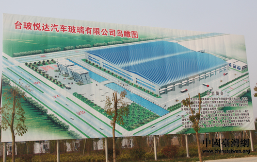 在臺玻悅達(dá)參觀時,項目正在緊張建設(shè)之中。記者從路旁的鳥瞰圖了解到,臺玻悅達(dá)汽車玻璃有限公司是由臺灣玻璃工業(yè)集團(tuán)與鹽城市經(jīng)濟(jì)開發(fā)區(qū)、江蘇悅達(dá)集團(tuán)正式簽約,共同投資興建汽車玻璃項目,該項目注冊資金3000萬美元,總投資9000萬美元,占地200畝,一期工程預(yù)計在2011年12月竣工投產(chǎn)。另據(jù)了解,截至今年9月,鹽城共有臺企622家,臺資僅次于韓資,已經(jīng)成為該市第二大外資來源。