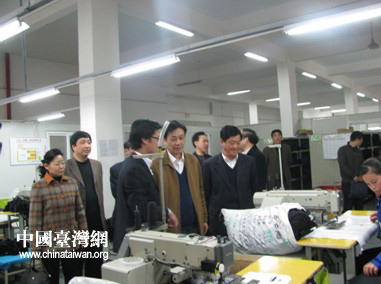 調(diào)研組一行還深入廣德臺灣工業(yè)園實地考察磐石油壓有限公司、立山(安徽)箱包有限公司兩家臺資企業(yè),詳細了解臺資企業(yè)目前的生產(chǎn)經(jīng)營情況以及存在的困難,認真聽取臺資企業(yè)負責人對貫徹實施《臺灣同胞投資保護法》工作的意見和建議。