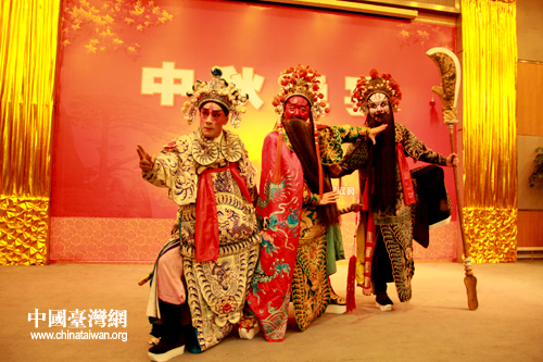 “2010海外臺(tái)商安徽行”黃山中秋晚宴上,由當(dāng)?shù)鼗談⊙輪T表演的傳統(tǒng)徽劇節(jié)目《水淹七軍》(中國臺(tái)灣網(wǎng) 董憲超 攝)