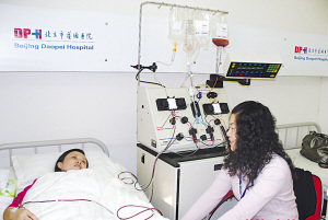 杭彬陪同韓秀芳采集造血干細(xì)胞,消除韓秀芳的不安。杭彬 薛馬義 攝