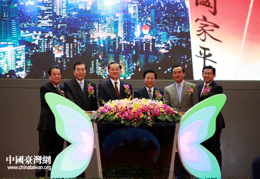 “江蘇臺(tái)灣周暨2010(南京)臺(tái)灣名品交易會(huì)開幕式”今天上午在南京國際博覽中心舉行。江蘇省委書記梁保華,中共中央臺(tái)辦、國務(wù)院臺(tái)辦主任王毅,中國國民黨榮譽(yù)主席連戰(zhàn)等共同按下啟動(dòng)按鈕,啟動(dòng)2010“江蘇臺(tái)灣周”。(中國臺(tái)灣網(wǎng) 鐘寶華 攝)
