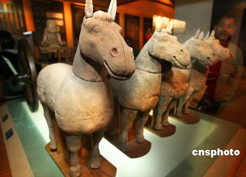 以宣傳2009中國第七屆花卉博覽會為主題的“盛世花開絲綢路全國行”車隊,3月下旬在徐州漢文化展示基地周圍作主題宣傳,春季來這里參觀游覽的游客絡(luò)繹不絕。徐州漢兵馬俑是徐州市東區(qū)部獅子山的楚王陵的組成部分,兵陣分布于6條俑坑,4000多件陶俑集群反映了西漢初年分封在徐州的楚王國軍隊整體建制和當(dāng)時工匠的杰出制作工藝。中新社發(fā) 宋吉河 攝