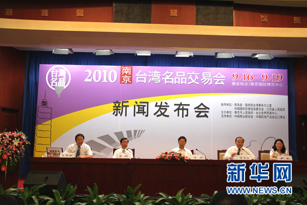 “2010南京臺(tái)灣名品交易會(huì)”8月5日在北京中國(guó)貿(mào)促會(huì)大禮堂召開(kāi)新聞發(fā)布會(huì),由南京市政府與臺(tái)北世貿(mào)中心聯(lián)合主辦的“2010南京臺(tái)灣名品交易會(huì)”將于9月16日至19日在南京國(guó)際博覽中心舉辦。這是雙方繼去年成功合辦“南京臺(tái)灣名品交易會(huì)”后的又一次合作。發(fā)布會(huì)上,南京市副市長(zhǎng)李琦、臺(tái)北世界貿(mào)易中心副秘書(shū)長(zhǎng)黃文榮分別就此次交易會(huì)的規(guī)模、特色進(jìn)行了介紹。