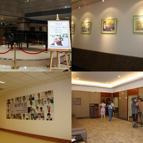 左上:琴音香頌:右上:藝術(shù)文化走廊;左下:微笑行動;右下:診區(qū)一角。