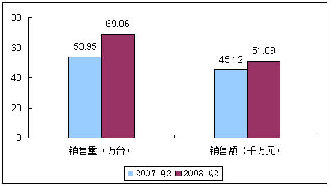 賽迪顧問市場監(jiān)測數(shù)據(jù)顯示,2008年Q2中國移動(dòng)硬盤市場穩(wěn)中有升,實(shí)現(xiàn)總銷量69.06萬臺,與2007年同期相比增長28.0%;實(shí)現(xiàn)銷售額5.11億元,同比增長13.2%。