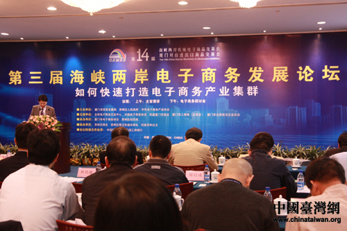 以“如何快速打造電子商務(wù)產(chǎn)業(yè)集群”為主題的第三屆中國(guó)(廈門(mén))海峽兩岸電子商務(wù)發(fā)展論壇今天召開(kāi)。(中國(guó)臺(tái)灣網(wǎng) 肖燕 攝)