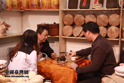幾位市民正在享用云南普洱茶。(中國(guó)臺(tái)灣網(wǎng) 肖燕 攝)