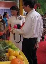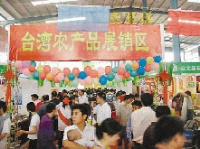 據(jù)悉,參展、參會的代表達(dá)500多人,其中臺商和外商超過340人!芭_灣展區(qū)”設(shè)有75個標(biāo)準(zhǔn)展位,有臺灣蓮霧、楊桃、芒果、哈密瓜、柳橙、番石榴、葡萄柚、木瓜和菠蘿等十多種臺灣的時鮮熱帶水果和400余種農(nóng)產(chǎn)品深加工制品參加展示展銷。參展的臺灣農(nóng)業(yè)團(tuán)體、農(nóng)業(yè)企業(yè)和大陸臺資農(nóng)業(yè)企業(yè)總數(shù)達(dá)到100多家,參展的臺灣深加工農(nóng)產(chǎn)品包括茶葉、水產(chǎn)品、飲料、蜜餞、果凍等20類100多種。