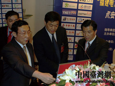 福建省委常委、省政府常務副省長張昌平與福建省委常委、宣傳部部長唐國忠共同按下“海峽西岸行”儀式啟動按鈕