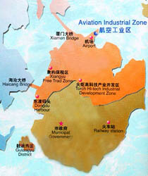 廈門航空工業(yè)區(qū)位于廈門本島的東北部,是廈門國(guó)際航空城的組成部分,占地面積1.64平方公里。工業(yè)區(qū)的東北部面向大海,西部與福廈公路、機(jī)場(chǎng)路緊鄰,距高速路6公里,距市中心8公里,交通便捷。 與航空工業(yè)區(qū)相配套的生活區(qū)占地1.47平方公里,位于工業(yè)區(qū)的東南部,其東北部面向大海。該生活區(qū)規(guī)劃分為高級(jí)住宅區(qū)和普通住宅區(qū),居住人口約45,000人。