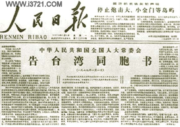 全國人大常委會1979年1月1日發(fā)表《告臺灣同胞書》