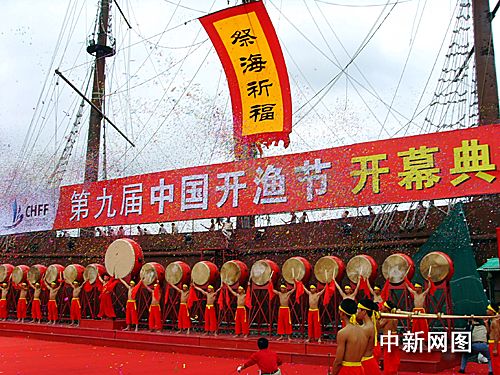中新網(wǎng)寧波9月14日電(徐水根 葉琛琛 傅婷婷 肖康煥)九月十四日,首次邀請(qǐng)臺(tái)灣東森電視臺(tái)現(xiàn)場(chǎng)直播的第九屆中國(guó)(象山)開(kāi)漁節(jié)開(kāi)幕式暨祭海儀式,在寧波象山石浦皇城沙灘舉行。同時(shí),臺(tái)灣臺(tái)東大學(xué)民俗表演團(tuán)體也趕來(lái)助興,海峽兩岸攜起手來(lái),擁護(hù)藍(lán)色海洋,為漁民祈福。