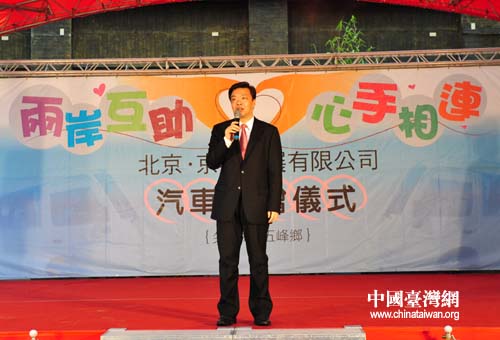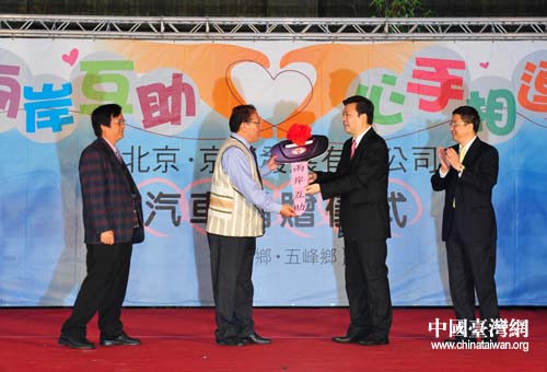 北京市常務(wù)副市長吉林代表北京京泰發(fā)展有限公司向新竹縣尖石鄉(xiāng)和五峰鄉(xiāng)捐贈汽車