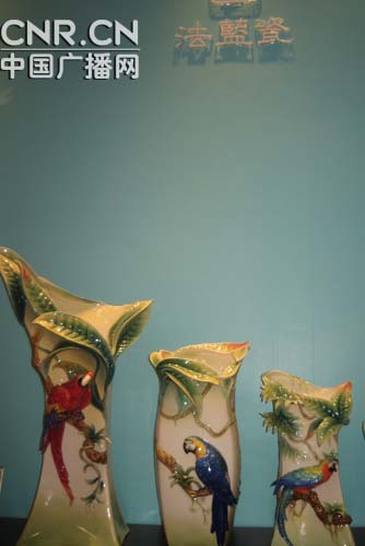 “你看,它大量運(yùn)用花草鳥獸的一個(gè)方式在產(chǎn)品里面,你買這組產(chǎn)品回去,等于把大自然帶回去。還能喚起大家重視環(huán)保。尤其很多人會(huì)送這個(gè)竹子花瓶給朋友,希望他節(jié)節(jié)高升!……” 外觀精美,氣質(zhì)優(yōu)雅,又被賦予這么多內(nèi)涵,深受海內(nèi)外政商名流青睞的臺(tái)灣法藍(lán)瓷果然名不虛傳。公司品牌公關(guān)經(jīng)理李建鎰?wù)f,在全球53個(gè)國家成功開拓6000多個(gè)營銷點(diǎn)后,公司已經(jīng)在廈門設(shè)立大中華區(qū)營銷中心,發(fā)力大陸市場:“隨著經(jīng)濟(jì)的起飛,人民越來越富裕的情況下,對(duì)于這種產(chǎn)品的需求我相信會(huì)越來越高!