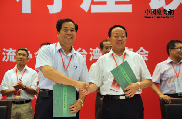 兩岸鄉(xiāng)村代表握手言歡。(中國臺灣網(wǎng) 邵磌 攝)