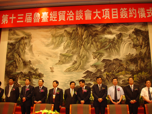 中國臺灣網(wǎng)9月20日濰坊消息 “第十三屆魯臺經(jīng)貿(mào)洽談會”大項目簽約儀式于昨日下午在濰坊舉行。山東省直有關(guān)部門、有關(guān)市政府負(fù)責(zé)人及臺灣女企業(yè)家協(xié)會理事長馬愛珍等簽約雙方代表參加了此次儀式。