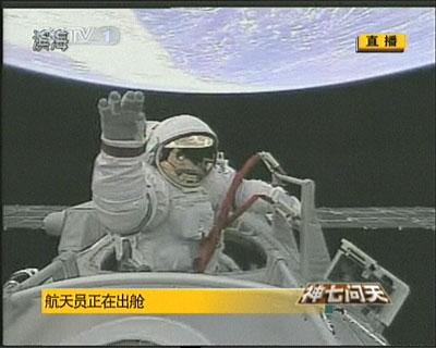 臺(tái)灣TVBS的報(bào)道說(shuō),神舟七號(hào)宇宙飛船25日順利升空之后,現(xiàn)在也完成了這趟太空行的主要任務(wù)出艙行走,透過(guò)電視轉(zhuǎn)播,神七航天員也向全世界的觀眾揮手。而這也是繼美俄后,大陸完成“太空漫步”目標(biāo),同時(shí)也意味大陸航天工程向前邁進(jìn)一大步。