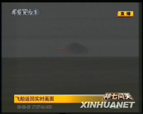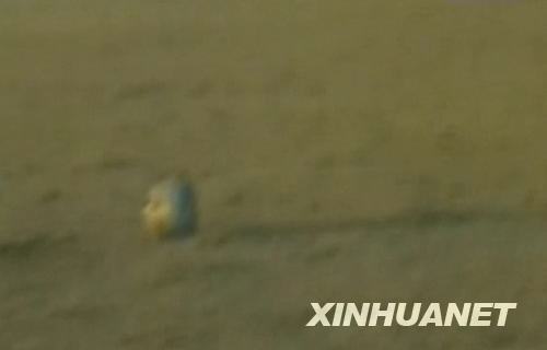 9月28日,神七返回艙成功著陸。新華社發(fā)(電視截圖)