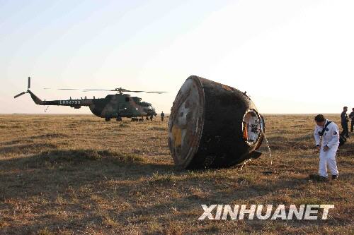 9月28日,神七返回艙成功著陸。新華社記者王建民攝