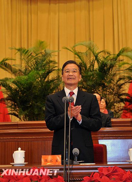 11月7日,中共中央、國(guó)務(wù)院、中央軍委在北京人民大會(huì)堂隆重舉行慶祝神舟七號(hào)載人航天飛行圓滿成功大會(huì),中共中央政治局常委、國(guó)務(wù)院總理溫家寶主持大會(huì)。新華社記者 樊如鈞 攝