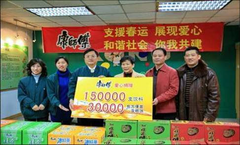 10、2008年元月,捐贈(zèng)50萬元物資予廣州市政府,對(duì)受華中雪災(zāi)影響,滯留車站的農(nóng)民工送上溫情。