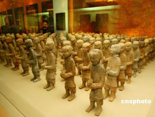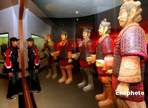 以宣傳2009中國第七屆花卉博覽會為主題的“盛世花開絲綢路全國行”車隊,3月下旬在徐州漢文化展示基地周圍作主題宣傳,春季來這里參觀游覽的游客絡繹不絕。徐州漢兵馬俑是徐州市東區(qū)部獅子山的楚王陵的組成部分,兵陣分布于6條俑坑,4000多件陶俑集群反映了西漢初年分封在徐州的楚王國軍隊整體建制和當時工匠的杰出制作工藝。中新社發(fā) 宋吉河 攝