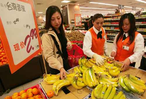 據(jù)東方網(wǎng)消息,大陸緊急采購(gòu)銷往上海的臺(tái)灣香蕉6日正式上柜供應(yīng)。相關(guān)果品公司人士說(shuō),由于臺(tái)灣香蕉在上海果品市場(chǎng)是“新角色”,激發(fā)了不少市民的“嘗新”消費(fèi),首日“銷得很好”,上市的10噸左右香蕉到了傍晚就“基本賣完了”。