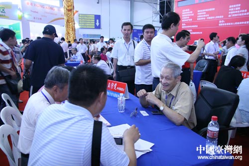 第七屆中國·海峽項(xiàng)目成果交易會6月18日上午在福州市開幕,圖為開幕后院士(右側(cè)老者)與廠商交談。(中國臺灣網(wǎng) 高大林 攝)