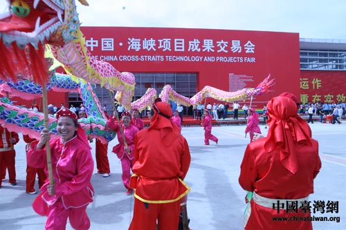 第七屆中國·海峽項(xiàng)目成果交易會6月18日上午在福州市開幕,圖為開幕前廣場上進(jìn)行舞龍表演。(中國臺灣網(wǎng) 高大林 攝)