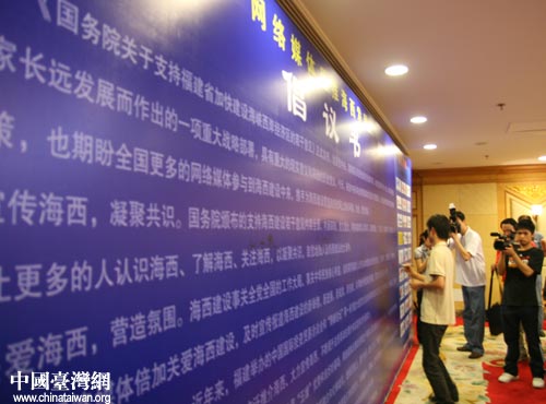 中國臺灣網(wǎng)6月19日福州消息 第六屆中國網(wǎng)絡媒體海峽西岸行大型采訪活動18日在福州啟動,來自全國各地的網(wǎng)絡媒體工作者今天參加網(wǎng)絡媒體助推海西發(fā)展座談會,并在倡議書上簽字。