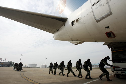 反恐部隊(duì)組織機(jī)上人員迅速撤離