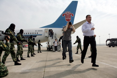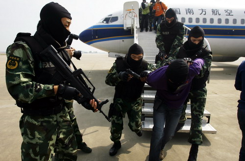 9時(shí)15分,“劫機(jī)分子”被押解下飛機(jī)。機(jī)上的幾十名乘客在反恐人員的組織下,迅速有序撤離飛機(jī)。機(jī)場安保人員隨即對(duì)飛機(jī)和行李展開了地毯式檢查。至此,整個(gè)反劫機(jī)行動(dòng)結(jié)束,取得了全面勝利。