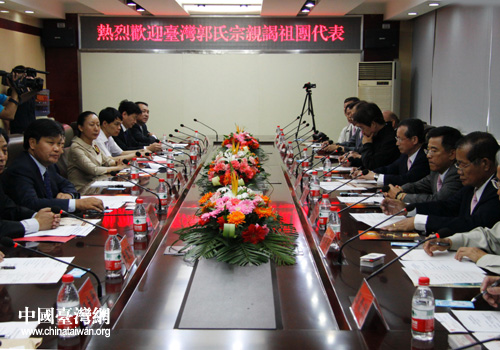 中國臺灣網(wǎng)5月24日三門峽消息 5月18日,臺灣郭氏宗親尋根謁祖暨文化商貿(mào)交流團到河南三門峽市參訪,河南省臺聯(lián)會長郭晴接待、陪同。三門峽市委常委、統(tǒng)戰(zhàn)部長趙艷,副市長高戰(zhàn)榮等與交流團一行舉行了座談會。