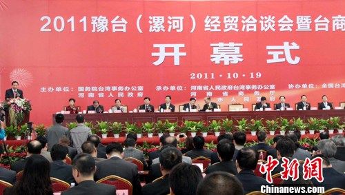 10月19日,“2011豫臺(tái)經(jīng)貿(mào)洽談會(huì)”在河南省漯河市開幕,來(lái)自兩岸三地500余名臺(tái)商與會(huì),“臺(tái)商中原行”活動(dòng)同時(shí)啟動(dòng)。
