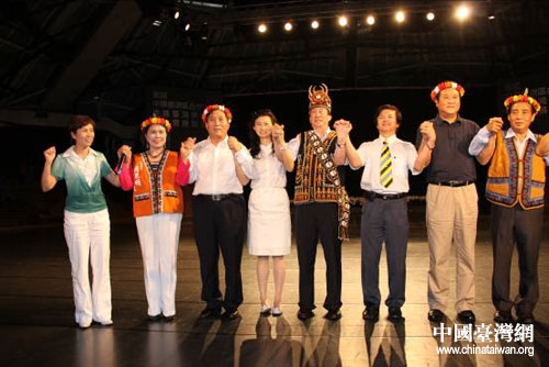 郭庚茂省長(zhǎng)一行還參觀(guān)了臺(tái)灣少數(shù)民族文化園區(qū),欣賞了少數(shù)民族舞蹈,與當(dāng)?shù)鼐用褚黄鸪拔覀兌际且患胰恕边@首歌跳起了民族舞蹈,進(jìn)一步拉近了彼此間的感情距離。與此同時(shí),河南省藝文團(tuán)體為當(dāng)?shù)厣贁?shù)民族獻(xiàn)上了一場(chǎng)精彩絕倫文藝演出,進(jìn)一步加強(qiáng)了兩地文化藝術(shù)上的交流與合作,促進(jìn)了兩地文化的共融。