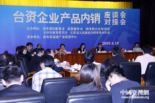 由商務部臺港澳司、國臺辦經(jīng)濟局、天津商務委、天津市臺辦共同主辦的“臺資企業(yè)產(chǎn)品內(nèi)銷對接及座談會”19日在天津舉行。(中國臺灣網(wǎng) 鐘寶華 攝)