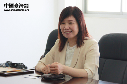 泉州宏漢制衣有限公司董事劉鳳嬌介紹公司相關(guān)情況。(中國臺灣網(wǎng) 胡珊珊 攝)