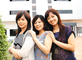 臺灣牛仔褲業(yè)界知名單身美女董事長陳羿伶(中),10月10日要在公司新建的兩岸牛仔褲物流中心舉辦文定喜宴。7日她與姊妹一起驗(yàn)收物流中心工程。圖片來源:臺灣《聯(lián)合報(bào)》