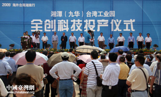 6月7日下午,參加“2009海外臺(tái)商湖南行”活動(dòng)的海外臺(tái)商,在湘潭臺(tái)灣工業(yè)園內(nèi)參加臺(tái)企全創(chuàng)科技投產(chǎn)儀式。(中國(guó)臺(tái)灣網(wǎng) 鐘寶華 攝)