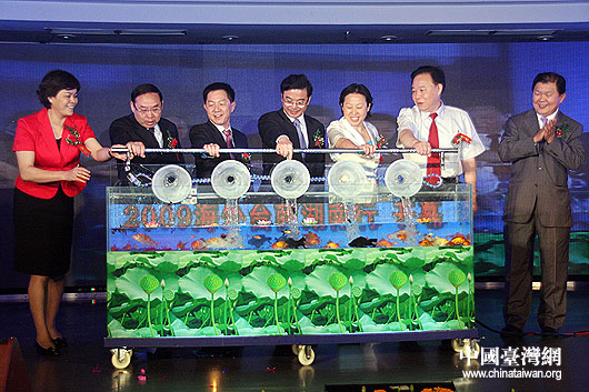 6月7日上午,湖南省省長(zhǎng)周強(qiáng)(中)、國(guó)務(wù)院臺(tái)辦副主任葉克冬(左三)等在湖南省湘潭市共同啟動(dòng)“2009海外臺(tái)商湖南行”活動(dòng)。(中國(guó)臺(tái)灣網(wǎng) 鐘寶華 攝)